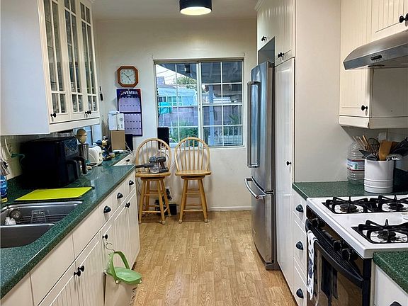 Welcome Home! Your Perfect Blend of Comfort, Style & Convenience Awaits! Step into this beautifully updated 3-bedroom, 2-bathroom home located in a desirable, central neighborhood close to schools, shopping, and major freeways — perfect for both relaxation and accessibility. From the moment you arrive, you’ll love the fully fenced property featuring an automatic gate opener, pedestrian entrance, and a gate doorbell to welcome guests and deliveries. Parking is never an issue with a spacious two-car garage, long driveway, and ample street parking for family and friends. Inside, the charm continues with gleaming hardwood floors, a bright open-concept living and dining area, and a split-bedroom floor plan that provides ideal privacy for all. The updated modern kitchen boasts white cabinetry, a breakfast bar, and a brand-new stove, making it the perfect space to cook, chat, and entertain. Both bathrooms have been thoughtfully designed. Enjoy a walk-in shower for convenience and a porcelain tub for those long, relaxing soaks. A pocket door provides the option to separate the living area from the bedrooms for added comfort and quiet. Laundry day just got easier with a dedicated indoor laundry room — a rare find in this area! Step outside and discover your private oasis: a redwood deck, two redwood-covered pergolas, and a covered patio ready for outdoor dining, barbecues, or quiet morning coffee. The producing orange tree adds a sweet touch to your backyard retreat, and the blend of green space, hardscaping, and entertainment areas makes it perfect for every lifestyle. With fresh paint inside and out, a new water heater, new fencing, new front yard landscaping, and owned solar panels for energy savings, this home is move-in ready and designed for low-maintenance living. Don’t miss this opportunity! Homes like this — stylish, functional, and energy-efficient — don’t stay on the market long.
