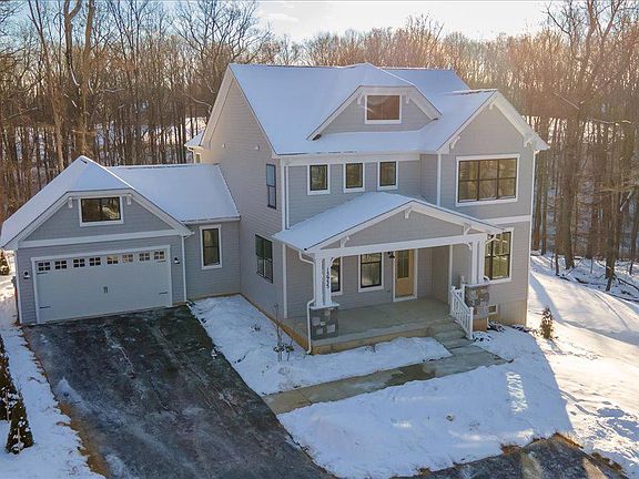 OFFER ACCEPTED - 2/8 OPEN HOUSE CANCELLED. Perched atop a hillside on a nearly 4 acre lot, this quality built arts & crafts home by local builder Laine Street Homes is clad with luxury appointments and offers beautiful views of the surrounding Countryside. Accessible via the spacious front porch, the main level includes a private office, formal dining room, a spacious family room with gas fireplace and large picture windows, and a morning/breakfast room that provides direct access to the trex deck. The gourmet kitchen includes a walk-in pantry, farmhouse apron sink, large island with breakfast bar, D'oro quartz countertops and slab backsplash, white and timber cabinetry with dovetail joints and soft-close drawers, and high-end Z-line appliances with 6 burner range and statement collection handle kit. The upper level features 4 bedrooms and 2 full baths. The primary suite includes a walk-in closet and a spacious bathroom with 7x6 spa shower with floor-to-ceiling tile and dual shower heads. The walkout lower level includes a large recreational room, third full bath, a finished bonus room and ample storage space. Additional features 7” LVP flooring, matte black hardware, shake siding and stone column bases, 2x6 walls, 92% efficient HVAC system, 30 year architectural shingles, and much more. All of this on a 3.79 acre lot with mature trees, a shallow stream and functional usability - a perfect setting to unwind and entertain guests. No HOA or restrictive covenants. This beautiful home will not last long, schedule your private showing today! Pre-Construction appraisal in December 2023 came in at $890,000.