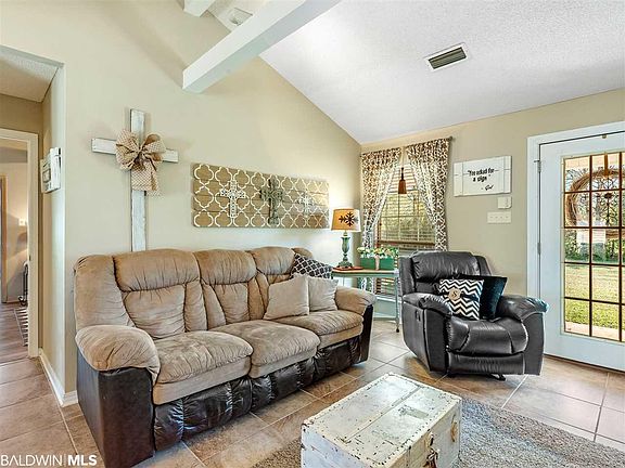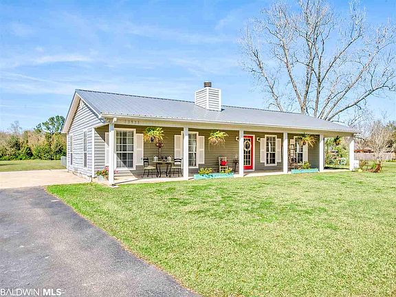 Adorable, updated Central Baldwin gem! This 3 bedroom 2 bath cottage sits on a gorgeous, level 2.86 acre lot. All bedrooms have new vinyl flooring and feel large for the size of the home. Large windows throughout bring in plenty of natural lighting. Kitchen and bathroom upgrades galore. Sunroom off of the master bedroom is a perfect setting for morning coffee, or could easily be converted to a large walk-in closet. The new french doors off of the dining area lead to the backyard. Outside you will find the covered carport, covered porch, open patio area. The above ground pool is fenced in and is less than 3 years old. There is also a storage shed in the backyard for mowers, lawn tools, pool accessories, etc. The new metal roof is less than 2 years old. Minutes from the interstate for convenient access to the Eastern Shore, Mobile, and Pensacola.