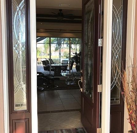 LAKEFRONT home with luscious upgraded landscaping and outdoor lighting make this stunning Bruce Williams home a show stopper! OPEN AND LIGHT FLOOR PLAN, perfect for entertaining and comfortable living. Many custom upgrades throughout the home, oversized 18" tiles, wood flooring, designer moldings, window treatments. Family room overlooks custom saltwater pool with brick paver deck and disappearing sliders and indoor/outdoor speakers. Den/Office off formal living room has floor to ceiling built-ins with custom woodwork. Kitchen is truly a cooks dream with SS appliances, island, large pantry, lots of counter space including desk and huge breakfast bar! Gas range, travertine backsplash, 42" cabinets w/slide outs, aquarium window w/ eat-in area. LARGE MASTER BEDROOM features sitting area w/bay window and en-suite bath. Back bedroom perfect for in-law suite w/own bathroom, walk-in closet & slider access to lanai area. GENEROUS EXTENDED LANAI with two covered areas! Seller has new upgraded roof w/20 yr warranty, new A/C 2016 , tankless gas hot water heater, solar panels for pool heating, upgraded alarm system, upgraded LED recessed lighting and new pool pump and motor in 2017! SELLER has replaced all big ticket items to make it worry free! Plus 1 year home warranty.