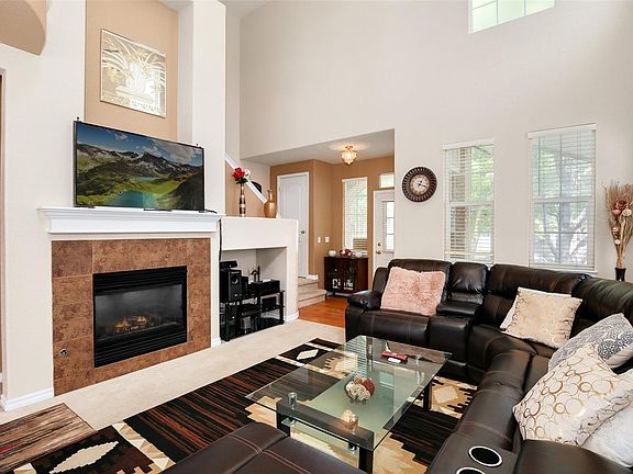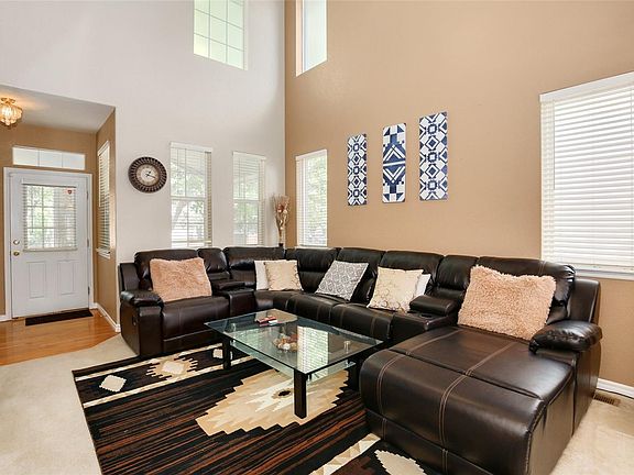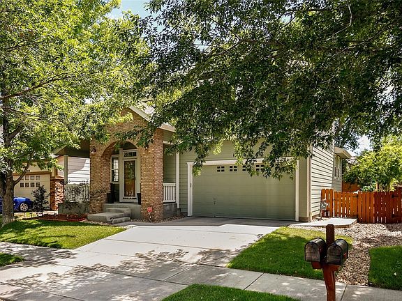 This immaculate North Range Village two-story is the Commerce City home you have been searching for! The charming covered front porch welcomes you into a flowing, light-filled floor plan accented by soaring ceilings and fresh neutral paint! The spacious kitchen is well-equipped with hardwood flooring, abundant storage space and a center island with granite countertop. The adjoining dining room flows outside to a large concrete patio, providing the perfect place for al fresco dining and summer barbeques! Upstairs, the master suite delights with a decorative tray ceiling, walk-in closet and 5-piece en suite bathroom. Two generously-sized bedrooms share a full bathroom with a double-sink vanity. The finished basement offers a bedroom with closet and egress window. Enjoy all the Colorado seasons in the fenced backyard that includes a utility shed and manicured lawn shaded by mature trees. Conveniently located steps from Turnberry Elementary School, recreation center and the community park.