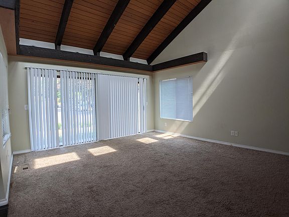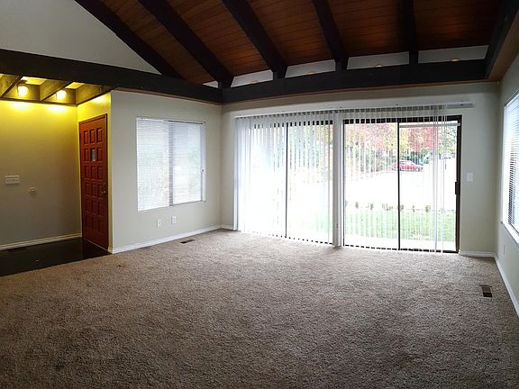 You'll be impressed by this two bedroom two bath home. A big open living space is inviting with its central hearth and line of site to the kitchen and breakfast nook. Floor to ceiling sliding doors give ample light. Great on grey days and awesome to open up during our wonderful summers. The home shares grounds with 5 other units in a very private setting. But there is lots of space to hang and enjoy being outside Most rooms are carpeted with linoleum in the kitchen, nook and laundry One enclosed garage has direct access to the home. Another parking spot is available off the drive. More parking is available in the drive. The first bedroom is a normal 10 by 10 room with quick access to the hallway bath The master bedroom is large and has a full master bath as well as an accessory vanity area. There is a back porch for hanging out and enjoying BBQ. The kitchen is set up for an active cook with up to date appliances and quick access to appliances. The laundry room is ample for doing laundry and home storage. Hookups are ready to go. Please note we will not review applications until an in person or virtual viewing of the property. Water,Sewer and Trash are included. All other utilities paid by the tenant Washer/Dryer Hookups in Unit