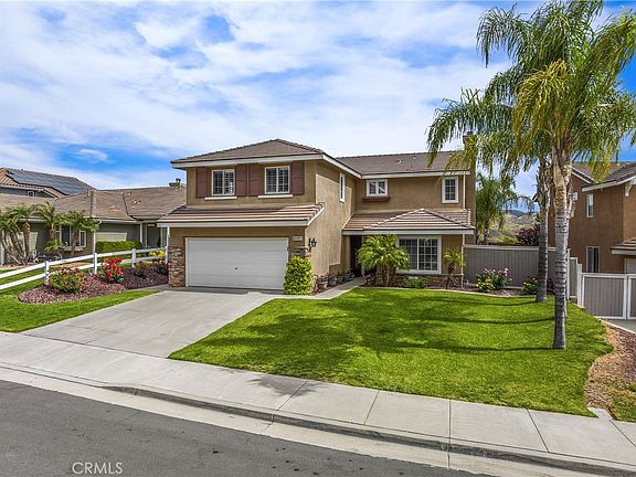 Welcome to this stunning 4 Bedroom, 3 Bathroom Horsethief Canyon home, perched on one of the largest view lots in the neighborhood. Located on a peaceful cul-de-sac, this beautifully remodeled property offers breathtaking views of the rolling hills of Corona. Step inside and be greeted by a spacious and recently renovated kitchen, perfect for entertaining friends and family. Two year new Luxury Plank Vinyl Flooring throughout, AC and patio cover only adds value to this home. The south-west facing orientation of the home ensure the family room remains cool and comfortable during the hot summer months thanks to the evening sun being blocked & solar panels. On the main floor, discover a guest room with a full bathroom, while upstairs boasts a large bonus room/loft and three additional bedrooms, including a magnificent master suite complete with a relaxing retreat. The home's energy-efficient whole-house fan is a welcome addition. The delightful fruit trees in the backyard (lime, lemon, orange, grapefruit & tangelo) add to the already perfect setting.