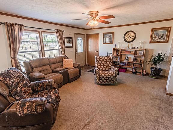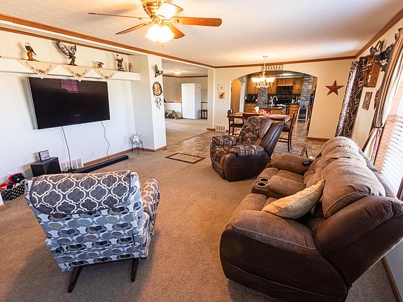 This beautiful country ranch home on 2 acres is just outside city limits! It features 5 spacious bedrooms, a large master bathroom with a tub and shower. The wide-open kitchen features a ton of class and is perfect for entertaining your guests! The property has gorgeous views to the rear and has a 32'x50' 8'' thick concrete pad just waiting for a garage to be built on it. Truly a great find!