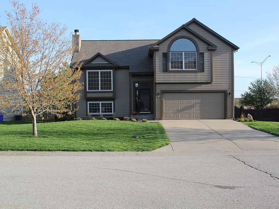 3 Bedrooom 3 Full Bath Split-Level with open floor plan, vaulted ceilings, and fully finished walkout basement in Symphony Hills. Blue Valley schools, walk to Elementary School, neighborhood pool and Blackbob Park. New roof, A/C, Windows and Doors. Wrought Iron spindles, refinished hardwoods, upgraded fixtures, tile and hardware throughout, stainless steel appliances. Fresh interior paint including upgraded trim. Fenced yard with freshly stained fence and deck, and sprinkler system.