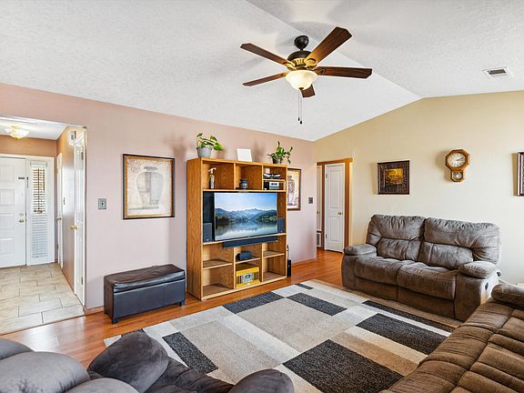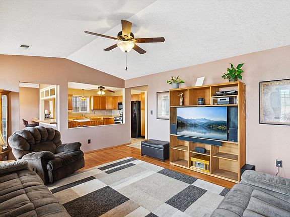 Come snuggle up in this charming abode! Original owners lovingly kept this home and added some recent updates in the bathroom and flooring as well as other areas. As you enter, you walk into a large cozy kitchen complete with an eat-in bar area. The living room boasts a nice pitched ceiling with small office off the side that gives access to the backyard. The primary suite sits at one end of the hallway with large walk-in closet and own bathroom. The remaining 2 bedrooms share a full bathroom with updates as well. Another major feature is that this home has NO POLY and was replaced with pex throughout! The backyard boasts an adorable pond, storage sheds and a high fence that doesn't obstruct the gorgeous mountain views. Come make this oasis yours!!