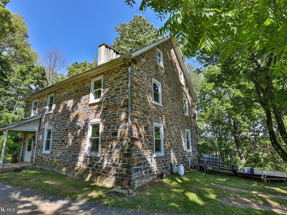 Picture Perfect Setting on 13 + Acres in beautiful Haycock township, Charm and Character abound in this Repointed 2280 SF Stone Farmhouse with large Horse Barn w/5 horse stalls, 3 or 4 Bedrooms, Large Eat-in Kitchen, Living Room with Wood Stove, 2nd Fireplace upstairs not in use, Replacement windows, Stairs to Attic Storage, Rear Covered Porch, Come put your finishing touches on this Historic gem. Bring your horses!