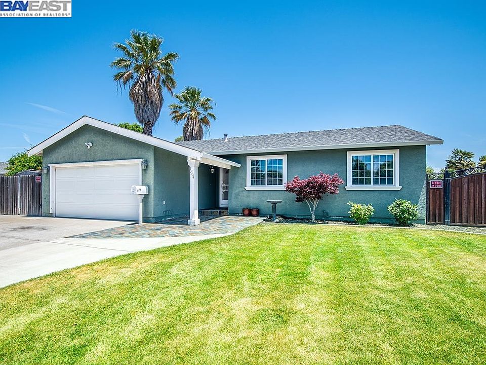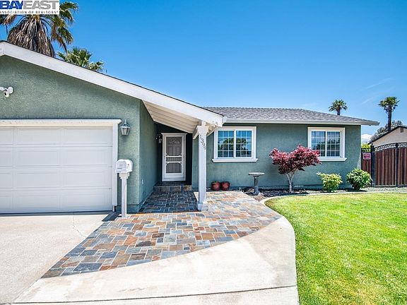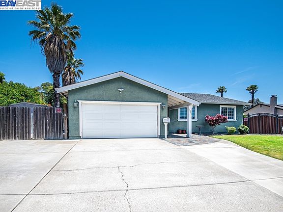 Single level in the Tempo Neighborhood of South Livermore! This 3 bed, 2 bath home is 1375sf and sits on a flat 8000sf lot. 2-car garaqe! Fantastic curb appeal. Home is ideal with a spacious open floor-plan. New luxury vinyl plank flooring through main areas and new carpet in bedrooms. Kitchen with freshly painted cabinets accented by tile countertops and recessed lighting. Dining space has wainscoting accent wall and framed windows. Main bedroom has ensuite with single vanity and shower stall. Large backyard with expansive concrete patio, grass area, and side yard access! Side access has large gate and plenty of room for boat/rv/storage. New interior paint, flooring, and HVAC. Close to nearby schools and parks. Minutes from everything Livermore Wine Country has to offer.