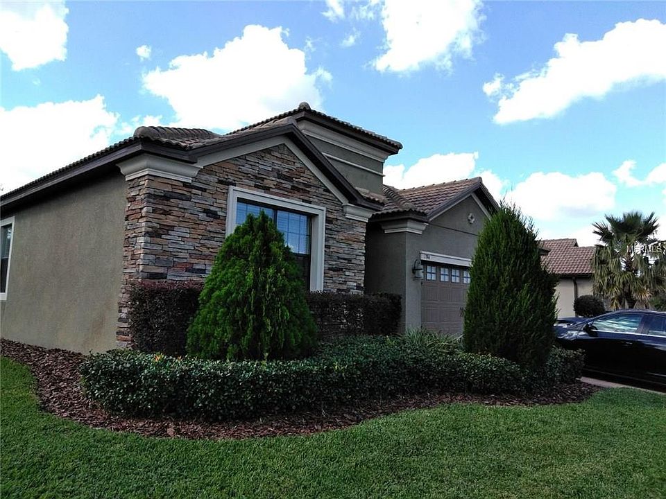 Welcome to this gorgeous stone front property!. "The Verandah" one of the few houses in this excellent community with 2,571 sqft! and includes a private movie theater!! Seller will leave all the sound equipment, projector & furniture from the movie theater!!!. Wood laminate floors throughout, Kitchen features stainless appliances, granite counters, solid wood cabinets and a breakfast bar. The home also features a tile roof and builder warranties that transfer. Located within the luxurious Country Club Golf Community of Champions Gate, including a lifetime Golf Membership and access to all the amenities of the OASIS clubhouse and Water Park!. Just minutes away from all the attractions, restaurants and major Hwys. This community is part of the 1.5 billion dollars in Osceola County that features restaurants, schools, golf courses, all the amenities of a big City including the new Champions Gate Down Town! HOA includes cable, phone, home security system, Oasis Club House, man gate, Internet, all exterior Landscape, volleyball, Tennis courts and unlimited access to Golf! At the Oasis clubhouse, you will enjoy all the amenities you can imagine! Kid's pool, splash area, family pool, lazy river, A/C private cabanas, restaurants, bar, gym, theater, business center, pool area service and much more! This house is a block away from the Golf Course!.