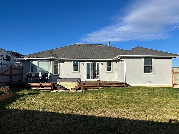 Charming 3 bedroom, 2 bath ranch style house for sale on corner lot in scenic Sage Hills subdivision in Meeker Colorado. Vaulted ceiling in family room, radiant floor heat throughout house. Interior upgrades include kitchen cabinets and ceramic tile flooring, bedroom carpeting and vinyl flooring on the interior. Exterior upgrades include Stucco siding, new windows and doors, redwood decks, privacy fence and hot tub. Garden beds, and sandbox in the back yard, 10X16 storage shed and 12X28 storage shed with roll up door.