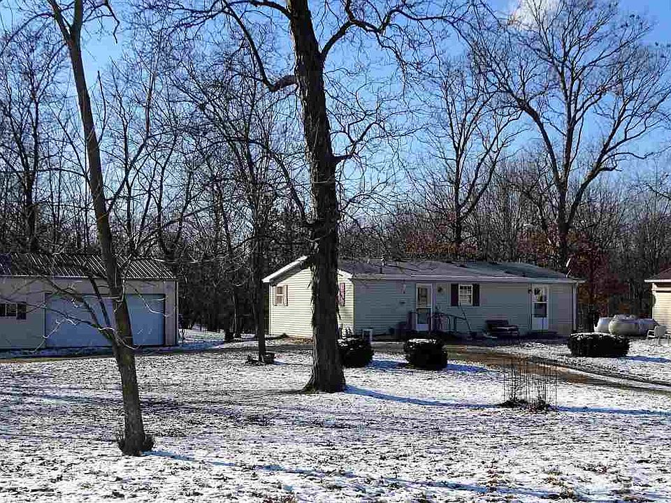 4+ acres of rolling, wooded home site w/pond! 2BR/2-bath manufactured home; Appliances stay; 24x32 detached 2.5 car garage; 20x14 shed Average Utilities: REMC - $100/mo, LP Gas - 500 gal/yr