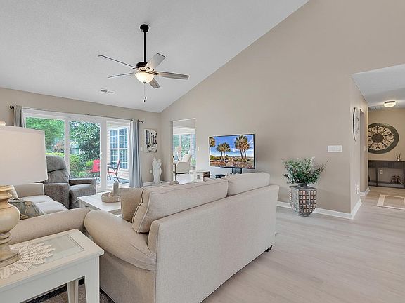 Nestled in the serene neighborhood of Southwood, this meticulously maintained home is a truly rare find. The property boasts a new HVAC system in February with an air filter, ensuring optimal comfort and air quality. The larger backyard, adorned with mature trees and bushes, provides both privacy and a picturesque backdrop for outdoor enjoyment. Featuring three bedrooms and two full bathrooms, this home offers an open floor plan that is perfect for both daily living and entertaining. The main living areas and bedrooms showcase luxurious vinyl plank flooring, eliminating the need for carpet and providing easy maintenance and durability. Also, Levalor blinds were just added in February. The updated kitchen is a chef's dream with its sparkling granite countertops, stainless steel appliances, crisp light grey cabinetry with easy-close doors and drawers, tiled backsplash, undercabinet lighting, and a convenient reverse osmosis drinking filter system. The home also features an open, airy Carolina room that is flooded with natural light, as well as a spacious breakfast nook for casual dining. The primary bedroom is a true retreat, boasting spacious dimensions, a lovely tray ceiling, and a quaint sitting area adjacent to three windows, offering lots of light and a scenic view. The primary bathroom offers a luxurious experience with its modern fixtures and finishes. The great room features vaulted ceilings and updated sliding doors that open to the patio, allowing for seamless indoor-outdoor living. The split-bedroom floorplan provides added privacy and convenience, making this home ideal for families or guests. Don't miss the opportunity to make this beautiful property your own! Located just minutes away from Surfside Beach, The Market Common, Myrtle Beach State Park, restaurants, entertainment venues, the airport, golf courses, and medical facilities, this home offers unparalleled convenience and access to the best that the area has to offer.