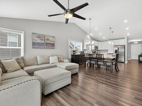 Meticulously maintained home on a wonderful cul-de-sac lot! Enjoy the welcoming front porch, spacious 3-car garage, and highly sought-after layout with 3 bedrooms on the upper level. The main level offers upgraded vinyl plank flooring, a versatile front Flex Room, vaulted ceilings that create an open, airy feel in the Kitchen and Great Room. Beautiful white Kitchen cabinets accented with crown moulding, a large breakfast bar, and stainless appliances included. Step outside to the private fenced backyard for relaxing or play. Upstairs, you’ll find 3 generously sized bedrooms, including a beautiful primary suite with a private full bathroom featuring dual sinks. The lower level offers fantastic potential for a future Family Room and additional Bedroom, plus plenty of storage space. A must see!