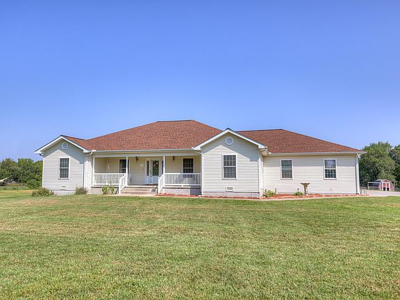 Move-In Ready 3 Bedroom, 2.5 Bath with partial walkout basement for bonus living sitting on your very own 4.69  acres +/-. Perfect for hosting friends and family with semi-open kitchen featuring abundant storage, breakfast nook and separate dining. Fresh updates include newer flooring in some spaces. Covered front porch and covered deck for enjoying the seasons. Attached 4 car garage with detached 2-car workshop. Loafing Shed & Chicken Coop for your own hobby farm. Serenity awaits you at this rural homestead with convenient access to I-49 and I-44. Contact your favorite agent for a personal tour today!