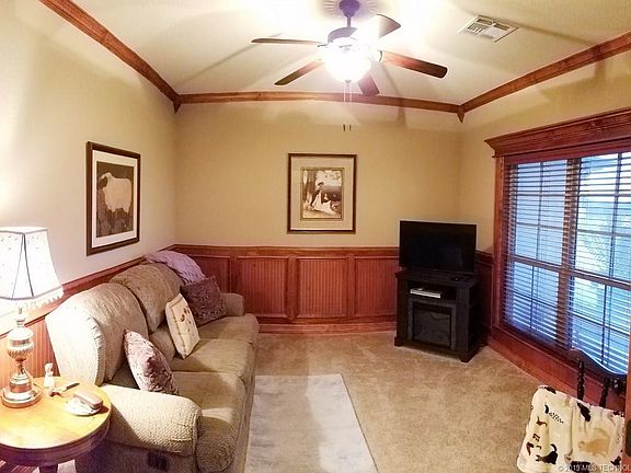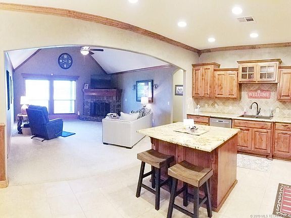Beautiful custom full brick one owner with incredible sunset views looking across the pond. 3 large bedrooms, 2 living areas + office. Granite kitchen with stainless appliances, gas range, fireplace in main living with high ceilings. Gorgeous knotty alder wood work. 5 piece master bath with seasonal closet. HUGE 1300 sq foot 6 car attached garage. 54' deep with plenty of room to pull truck and trailer in. Don't miss out on this one of a kind home!
