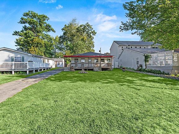 The home was previously configured as a 2-bedroom and could easily be converted back to suit your needs. The covered front porch is perfect for relaxing and enjoying the lake views, while the large driveway and 2-car detached garage provide ample parking and storage.