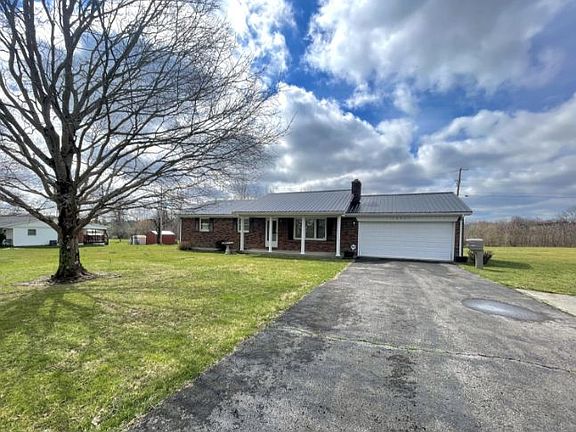 Well cared for brick ranch with great floor plan! This 2 bedroom, 2 full bath home features spacious living room with stone ventless gas log fireplace. Kitchen dining combo offers solid wood cabinets, white appliances, garbage disposal, and eat-in bar. Did I mention that most all furniture stays? Master ensuite has walk-in shower and walk-in closet. Hallway laundry closet includes stackable washer and dryer that can be separated if desire. The screened sunroom is perfect for morning coffee, huge flat unrestricted lot totaling 1.3 acres per PVA includes metal storage building, and two car garage offers plenty of storage room! Property does have two separate tracts per deed. Great home at a great price!