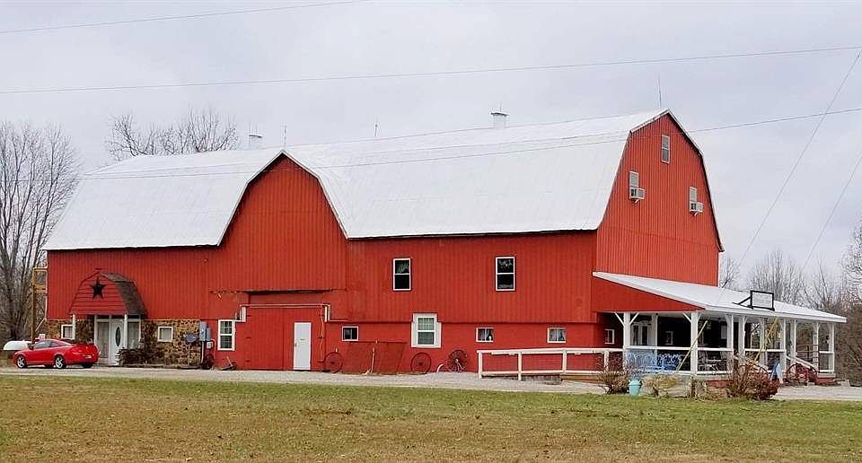 Since this barn was originally built over 120 years ago it has been an icon in Southern Indiana. Includes the barn, lake and almost 4.5 Acres. Most recently it has been converted into an antique marketplace consisting of approximately 12,000 square feet of retail space on the top two floors. The main floor features a fully appointed kitchen with restaurant space that will seat 50 guests including men's & ladies restrooms. There is also a 1,700 sq ft of living quarters on the main floor including 3 bedrooms, 2 full and 1 half bath. Great balance of rustic style and modern comforts. Seller have done major renovations on the property including insulating, electrical, installing a cargo elevator and adding doors and stairwells to meet all fire codes. This property has a long history in our community and is ready for your business or residential ideas. Would make a great location for an owner to live and work in the same location. Call today to take a tour.