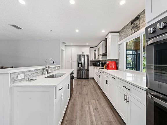 Courtesy of Keller Williams Realty - Welli Welcome to your private oasis in the heart of Wellington! This beautiful 3-bedroom, 2-bathroom pool home is nestled on a spacious lot in the sought-after community of Pinewood. Minutes from top-rated schools, equestrian venues, shopping, and dining. The home features an open-concept layout with vaulted ceilings, abundant natural light, and a seamless flow from the living area to the screened-in patio and sparkling poo. The updated kitchen offers granite countertops, stainless steel appliances, and a breakfast bar. The primary suite overlooks the pool and boasts a walk-in closet and en-suite bath with dual sinks and a soaking tub. Enjoy Florida living year-round in the expansive backyard with lush landscaping and a covered patio.