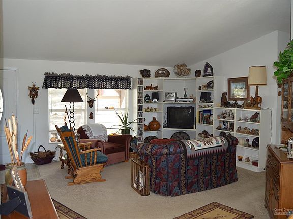 Top of the line quality throughout! Property has outstanding Cascade views & adjoins public land above Deschutes River. Concrete ramps to all drs, RV dump, covered patio/2-car carport (440sf). Attached, oversize-dbl garage (930sf). Shop (1960sf) w/overhead RV door & 2nd overhead door, Incl: shop, workbench, shelving & woodstove. Inside is lrg kitchen w/island & pantry, family, dining & exercise rm off master. Soaking tub, shwr & dbl vanity-master bath. Built-in shelving & entertainment center stay.