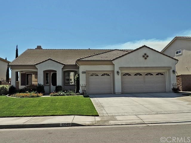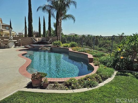 Beautiful turnkey SINGLE story home located in the Eastvale community. This home has it all, move in ready. Cul-de-sac property with fantastic foothill views from the backyard. In the evening enjoy the twinkling lights of the foothill homes. Dramatic high ceilings create a spacious feeling throughout this home. Formal living and dining area. Kitchen has granite counters, walk in pantry, island with breakfast bar and dining nook. All kitchen appliances will remain with the home. Kitchen opens to family room which enjoys a cozy fireplace. Master bedroom has soft natural light, master bathroom with tiled floors and oversized walk in closet. 4th bedroom located near front of home is currently used as a music room. Backyard is entertainers delight with gorgeous sparkling pool and spa. Pool features shallow reef area for small children play time. Raised deck area to lounge or soak up the sun. Outdoor bar bq cook island for outside cooking with extra dining space. No rear neighbor, backyard overlooks walking trails and neighborhood area also features horse trails. Shutters on many of the windows, upgraded light fixtures, designer wall colors. Three car garage. Beautiful, Beautiful, Beautiful!!
