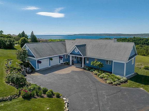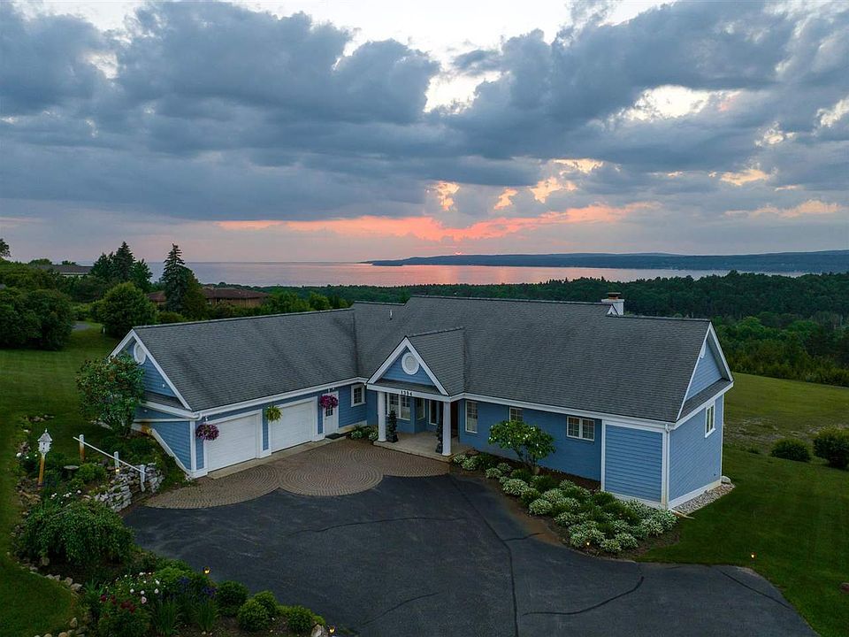 There is very little in nature to rival a sunset over Little Traverse Bay, but one sure way to top it is to experience it from the comfort of your own expansive, Nick White designed custom-built home. Perched on the hill of Bay View Heights this home sits on .85 acres with a large side yard and fenced area for pets. You will own one of Petoskey's best views of the bay, Round Lake, and surrounding countryside. Thoughtfully designed for the view to be the focal point of nearly every room, you will enjoy living and entertaining in your home in one of the area's more desirable neighborhoods. On the main floor you will find an expansive kitchen with a view so breathtaking you will want to hand wash dishes even though you don't have to thanks to your stainless-steel dishwasher and kitchen appliances. Can't decide if you prefer formal dining to a more casual scene? You don't have to choose with a formal dining area and breakfast nook off the kitchen. One of two sitting areas, the upper-level living room with tray ceiling boasts a brick, natural gas fireplace to gather round when you want a change of scene. You will love waking up to Lake Michigan in your roomy main floor master with spacious en suite bath and oversized walk-in closet. With three additional bedrooms in the lower level, this home is ready for a growing family or owner who wants to welcome all the house guests to this Northern Michigan escape. The attached heated garage will keep you warm and dry as you venture out during winter. Off the garage is a spacious mudroom and laundry or office area. Sellers have purchased a home warranty to give peace of mind to the new owners. House comes mostly furnished including many antiques. Protect your view with the vacant water view lot or build your new home while you live in the existing home. Vacant water view lot across the street available as well.