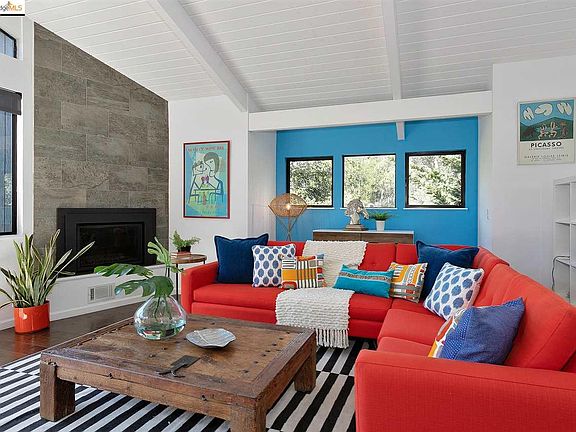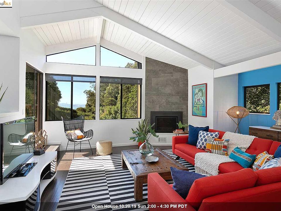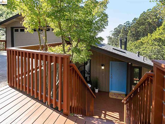 Fun contemporary with San Francisco Bay Bridge and City views located within a short distance to Claremont/Rockridge conveniences. Easy commute to San Francisco or Lamorinda. Inviting and open layout ideal for casual living or entertaining on sunny wrap-around decks and patio. Views from all main level rooms and decks. Hardwood throughout first floor. Vaulted ceilings. Chef's kitchen. Two Fireplaces. Three beds/3.5 baths. Two-car garage with exterior access. Easy living! Worth a look! Open 10/6,10/12, 10/13 from 2-4:30.