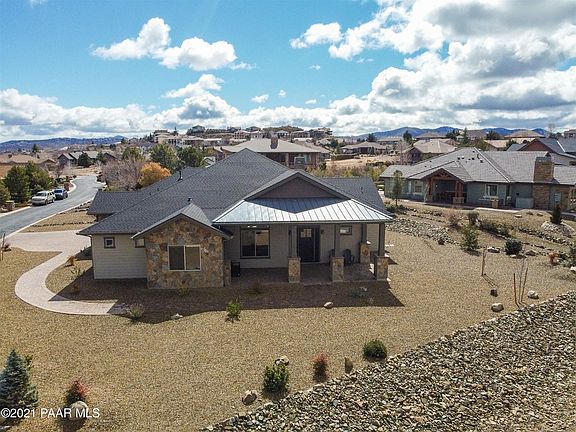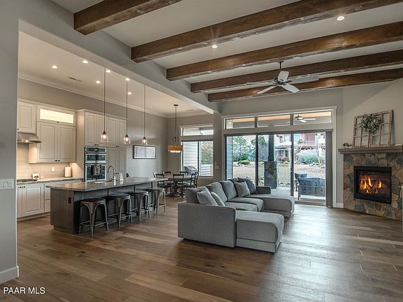 Welcome home to this stunning single level home in the prestigious Estates of Prescott Lake. This beautifully appointed 3 bed, 3 bath home offers a spacious and open layout. With top of the line finished, 12 foot ceilings, real wood flooring, stunning tile work, gourmet kitchen featuring Jenn-Air appliances, oversized 3 car garage, and formal dining space, this home has it all. The impeccably landscaped yard is easy to care for, and all within walking distance to fabulous clubhouse. Featuring both indoor and outdoor pools, fitness center, pickle-ball, private restaurant and bar, members only golf course, hiking trails, clubs and much more, Prescott Lakes is truly Prescott premiere community. Schedule your showing today.
