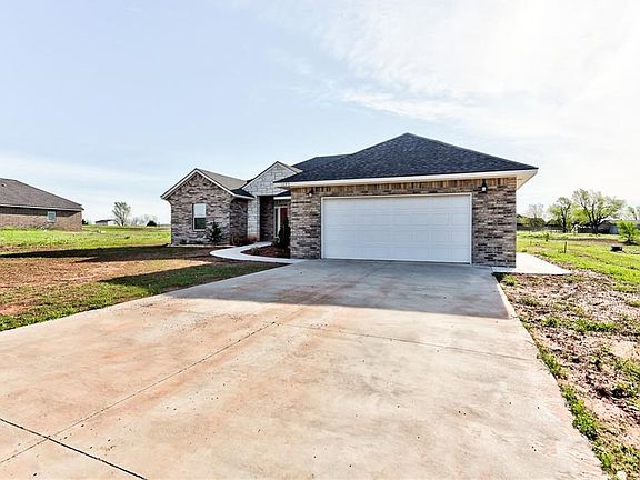 You'll enjoy this Beautiful Home on 1 acre with open floor plan in a great country setting. Huge open 10 feet high living area with wood style tile flooring and carpeted bedrooms with quartz countertops everywhere. Kitchen island with dishwasher, sink, garbage disposal, and breakfast bar. Additional kitchen features shaker style cabinets with range and microwave. Ceiling fans throughout this spacious 4 bedroom, 2 full bathrooms home. Master bathroom has separate bath and walk-in shower with dual vanity, and walk in closet. Central Heat and Air with 2 car garage, and garage has an additional room for workshop or storage. All electric home with well and aerobic septic system. Convenient separate laundry room near garage entrance. Storm shelter installing this month, for up to 10 people. **Builder will pay $5,000 towards buyers closing costs**