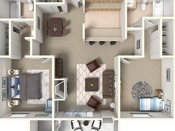 890 sf dual master floor plan. Bedrooms split on either side of the living room. Granite upgraded top floor unit with vaulted ceilings in living room. include water, garbage, sewer, and 1 reserved space in underground garage. Limited additional parking available first come first serve basis (parking permit required and strictly enforced)