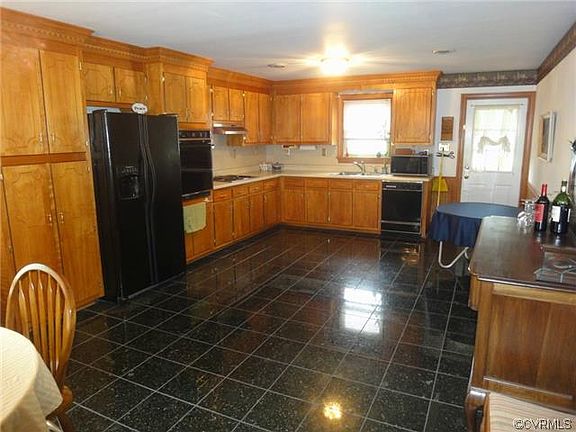 Spacious brick rancher with wood floors throughout the great room hall way and three bedrooms on main level, beautifully updated kitchen, huge with spacious eat-in area, full tile bath on main level with double vanity + tile bath in basement with shower, bonus room in basement. Enclosed sun porch on the back. Country setting overlooking scenic fields with easy access to Rt. 60/Flat Rock & Rt 288.