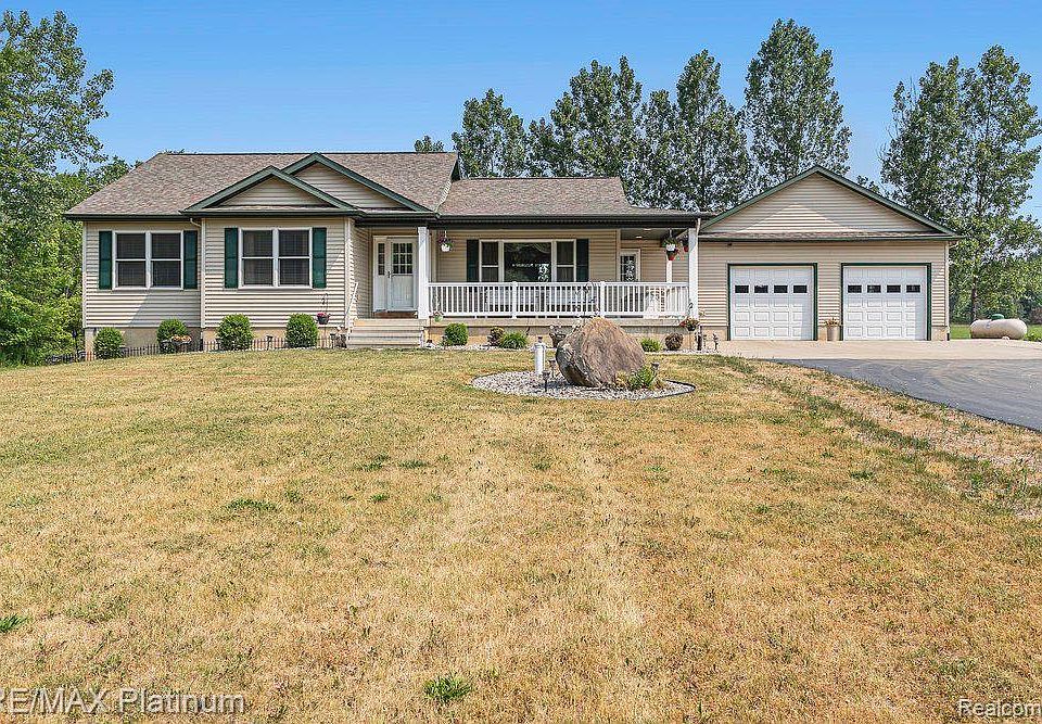 Ranch home is located on a little over one acre. Open floor plan, hardwood floor in the living and kitchen area. Kitchen feature beautiful cabinets, an island with large drawers, and recessed lights. Vaulted ceiling in the kitchen and living area. Six-panel oak doors throughout the home, along with wood trim. The primary bedroom has a pan ceiling, a walk-in closet, a door leading out to the beautiful deck, and a private backyard. The finished basement has recessed lights, a high ceiling, large daylight window, Pergo floor, a bedroom with egress window, room for an office, a large bathroom, and plenty of storage. 40x 18 trex deck, huge two-car garage, whole-house backup generator, air conditioning, long wide paved driveway for parking. Large laundry room with its own entry. Covered front porch. This home has been well maintained.