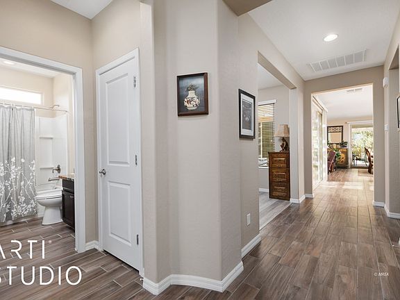 Sun City Haven Plan | SID Paid | Upgraded. Located in Sun City Mesquite's premier 55+ community, residents here enjoy access to great amenities, including golf, indoor and outdoor pools, a fitness center, tennis courts, and a full-service clubhouse. This Haven floor plan offers 2 bedrooms, 2 bathrooms, a den and a side courtyard. The SID balance is paid in full! The kitchen is designed for entertaining, featuring a counter-height granite island, stainless steel appliances, granite countertops and a large pantry. (All appliances are included at no additional cost - kitchen and laundry area) Wood-look tile flooring runs through the main living areas, with luxury vinyl plank in the bedrooms, walk-in closet, and den. The primary suite includes a walk-in shower and a great sized walk in closet. The garage provides a 2-foot extension, added storage space, a water softener, and a split cooling system. The exterior offers costly paver stone upgrades on the driveway, side courtyard and extended back patio. Custom pergolas enhance both outdoor spaces. The large, fully fenced backyard provides extra privacy and plenty of room for outdoor enjoyment. This home will not last long-call today for more information and come see for yourself!