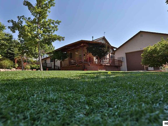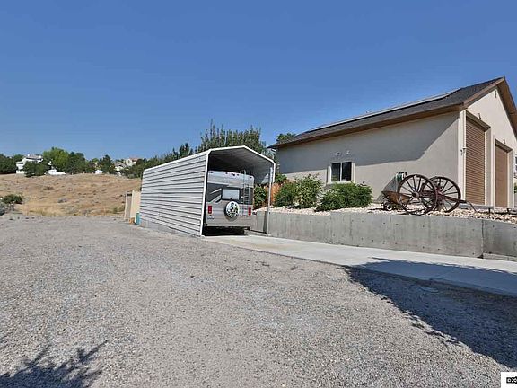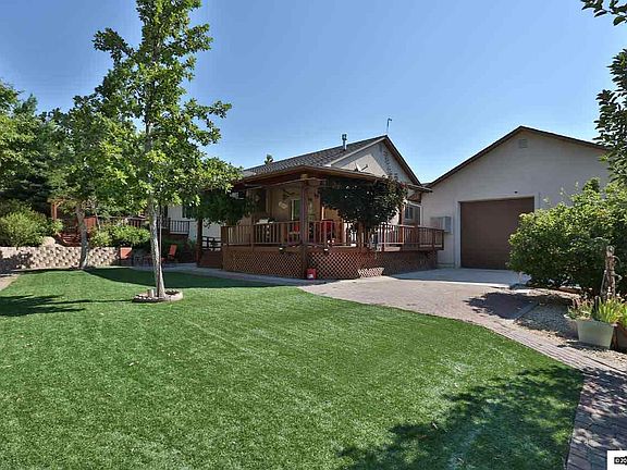 Excellent opportunity to own a one of a kind home in sought after Southwest Reno with room for all of your toys. In addition to the attached 3 car garage there is a 45x40 attached RV garage/shop attached with 3 garage doors - one of the doors is 14 feet tall to fit large RV. The property extends below and has additional RV carport with cement pad. NO HOA/CCR's. Extensive mature landscaping with artificial turf in front and backyard, 2 large decks in backyard, garden, fruit trees, & views of the mountains