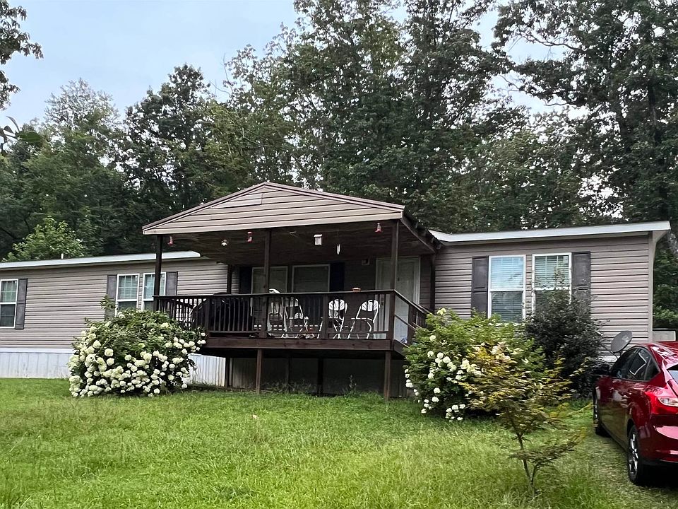 This nice 2015 double wide (bought brand new by the current owner and never rented) is on a fantastic 2.3 acre piece of land. A front covered porch and a nice back deck has been added. 2 car carport is also included, and a very nice outdoor storage shed! All kitchen appliances (fridge, microwave, dishwasher, stove) are all included! Master has a nice walk in sized closet and garden tub. Over 2300 square feet includes a very large, open floor plan for parties and entertaining!
