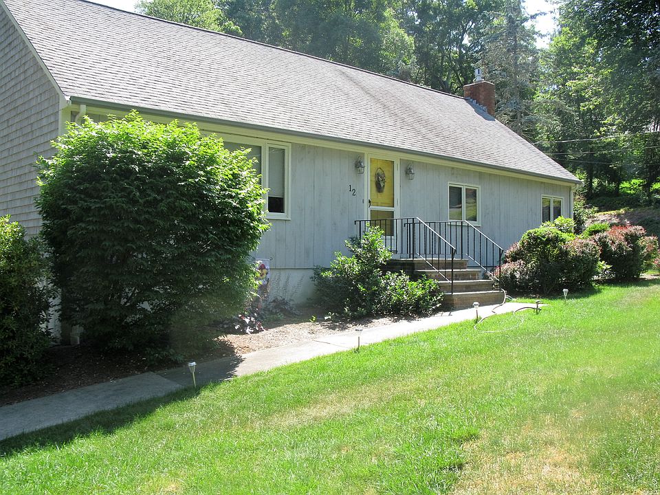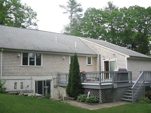 Beautiful oversized ranch style home tucked away in a highly sought-after Marshfield Hills neighborhood. This bright and spacious home features one level living with gleaming hardwood floors, central vac, 3 bedrooms including the freshly painted master with direct access to the renovated main bath, a finished basement with full bath, and plenty of storage throughout. A large living room with bay window opens to the renovated kitchen with large peninsula and breakfast nook, then leads to the sunken dining room with vaulted beamed ceilings, bay window/window seat and access to the deck which overlooks the beautifully landscaped private back yard. The 2 car garage leads into the spacious finished basement. Basement features include, wall to wall carpet, a large laundry closet, full bath with shower stall, propane fireplace, and leads out to the lovely stone patio and hot tub area. Great value for Marshfield Hills!