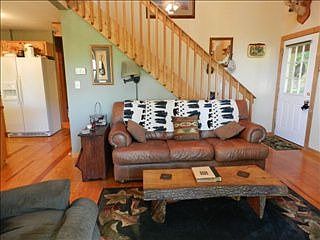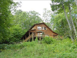 Epitome of a Mountain Getaway. Listen to the peaceful stream while you sit on the Open Deck or Covered Porches to enjoy Awesome Long Range Views. Wide Pathways to the Stream---picnic table & swing already there! Pack a lunch & your favorite beverage & escape from the real world. You will love it! 2 streams come into one--it's roaring! Cabin w/Wood Floors & Ceilings, Stone FP, Unfinished terrace level. Garden Spot, Gated Circular Driveway. Loft Space for Office. Furniture Negotiable.