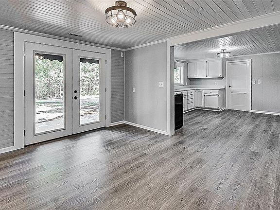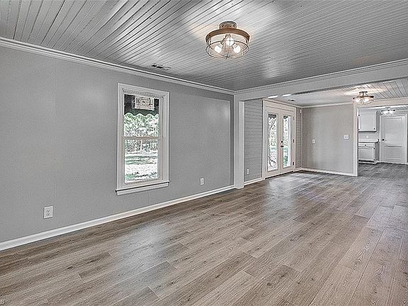 Charming renovated home on a beautiful setting! New interior paint, LVP flooring, light fixtures & windows! Nice sized living room, dining room, spacious eat-in kitchen features new quartz counters, new SS range & huge pantry with shelving! Primary suite boasts bath with quartz counter & ceramic shower. Second bedroom is generous in size & features 2 closets. Tons of possibilities in the huge laundry room w/cabinet & quartz counters. Outside space boasts covered front porch, stamped concrete patio, 24X30 wired workshop & 16x24 wired storage building! Picturesque 1.23+/- acre lot featuring mature trees is the perfect setting for this gem!