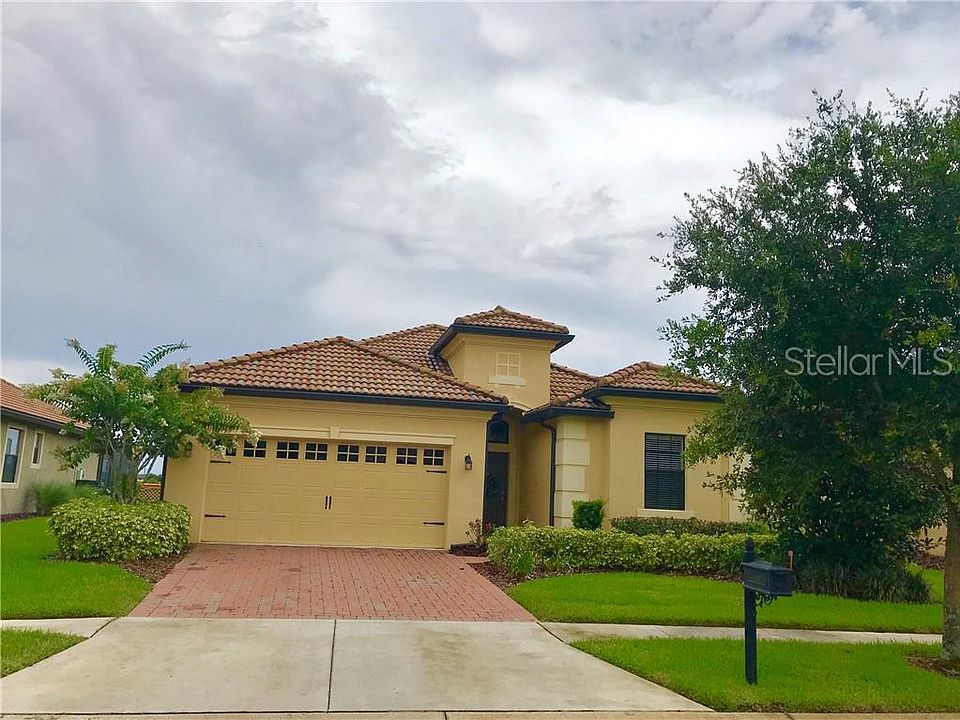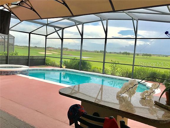 Immaculate 3 Bed / 3 bath executive home in Country Club at Champions Gate gated resort community. This home comes with an expansive golf course lot and accompanying view. Disney Fireworks can be enjoyed right from your back screened in patio and outdoor kitchen and grill. In ground pool comes with solar heat for year round comfort, in ground spa, and it is a salt water unit. The home is equipped with solar panels for generating energy and keeping your electric bill low. Inviting open floor plan that makes it so comfortable for daily living and entertaining. The master bedroom is quite large and has a pool access and amazing views. The master bathroom is upgraded and has that spa like feel. Look no further and welcome home!