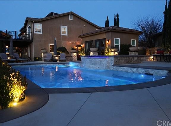 Incredible South Corona home. Imagine coming home to your 5BD/3.5BA after a relaxing scenic drive and views of breathtaking mountain and city lights. The sellers have put a lot of details to upgrading the home and is a must see in person to appreciate all the features/upgrades. A large entrance greets you as you travel towards a formal room, living room, wine bar, gourmet kitchen, private courtyard and guest house while listening to music in their built-in surround system. Custom build cabinetry and arched doorways highlight the spacious floorplan. The kitchen and family room are an entertainers delight with spectaculars view of the incredible mountain views. Some of the gourmet kitchen features a large center island, granite and marble counter-tops, and stainless steel professional appliances. Take a walk upstairs which has recently been upgraded with wood flooring thorough. The huge Master Suite includes a Mountain View balcony, retreat, double vanity, and walk-in closets. An outdoor courtyard with a built in fireplace and sitting area sits between the main house and the guest house. The 1 bedroom guest house features vaulted ceiling and a full bath. The jewel of the backyard is this incredible pool and spa that has a 200+ degree view of the surrounding mountains. Solar Panels fully paid off. This is truly a move-in ready home. Easy access to Foothill Expressway for quick access to OC, walk to famous Skyline hiking trails. A Must See!