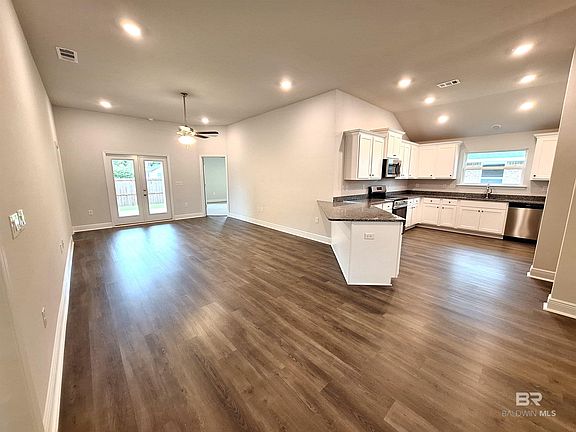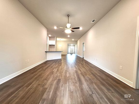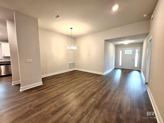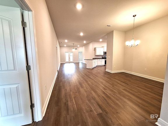 Beautiful Beaches are in your near future! Just 20 minutes to the beaches. This home is located in the center of Foley, with shopping, entertainment, and easy 2-minute access to the beach express or Hwy 59. This 4-sided beautiful brick home features a large foyer entry into the family room with the dining room to the side. Large kitchen with granite countertops, stainless appliances, and tons of cabinets. Spacious pantry. The kitchen overlooks the family room with a high 10ft ceiling leading out to a large covered porch. This gorgeous primary bedroom has a lovely tray ceiling with extra flush mount lights; a huge walk-in closet and the primary bathroom with double sinks features a separate water closet as well as a garden tub with a separate shower. All bedrooms have walk-in closets. Bedrooms 3 and 4 share a large Jack and Jill Bathroom with double sinks and a private water closet. Bedroom 2 has its own ensuite bathroom. Spacious 2-car garage. Luxury Coretec flooring throughout with carpet in the bedrooms. The seller also provides Termite protection with a renewable bond. Premium hurricane fabric shields. Digital multimedia box. Buyer to verify all information during due diligence.
