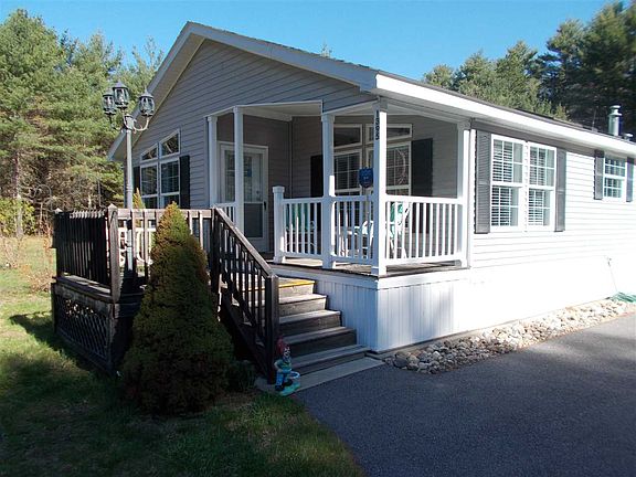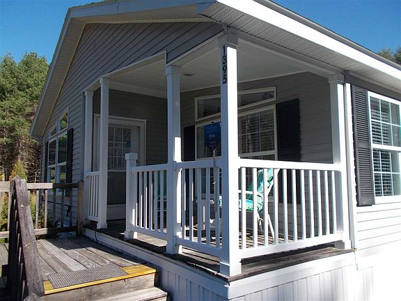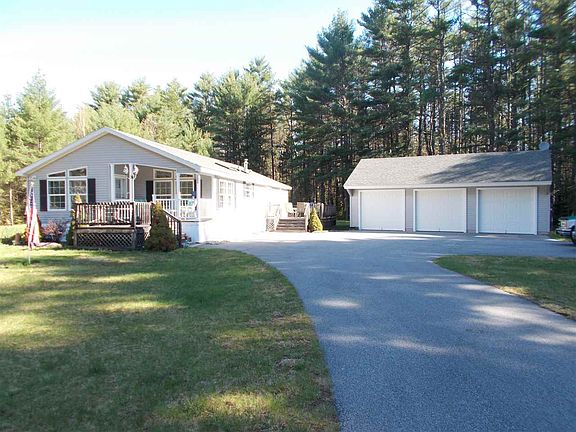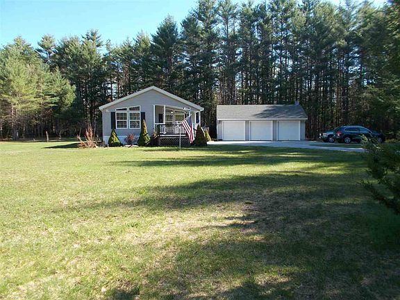 LIKE NEW SINGLE LEVEL MANUFACTURED HOME ON PRIVATE 1.6 ACRE LOT. Spacious floor plan with open living/dining/kitchen area with vaulted ceiling and wood laminate floors. Large master bedroom suite with private bath and walk-in closet. Two additional bedrooms, one of which would make an excellent den. First floor laundry, fully applianced kitchen, open porch, and large deck. This is a bright and sunny home all day long. No maintenance exterior, energy efficient, and designed to be easily winterized for those only looking for seasonal use. Large three car garage perfect for vehicles, storage, or workshop and a paved driveway. All on a private, level lot.
