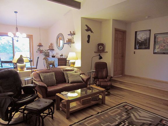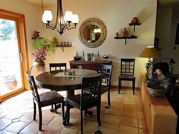 The interior features tile, stone and wood finishes with a southwestern theme. One-level with sunken living room.