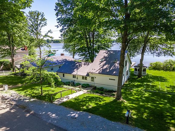 Meticulously maintained 3 bedroom, 2 bath home boasting sunrise views over serene waters. 100' of lakefront nestled on Fish Lake in Lagrange County with channel access to Royer Lake. This property offers a nice lakeside yard, deck and gazebo...perfect for relaxing and entertaining. Kitchen features a breakfast bar, tile backsplash, custom cabinetry and built-in pantry with pull-outs, stainless appliances including a wine chiller and is open to the dining area with a slider to the lake. Tile flooring in the entry, kitchen and bathrooms. Relax in the spacious living room and enjoy the views with a 2nd slider to a covered lakeside patio. Main level bedroom suite provides a private bathroom and large walk-in closet. You'll also find a guest bedroom, full bathroom, laundry closet and utility closet on the main level. Upstairs is one large bunk room with skylights and two closets. Includes all kitchen appliances, wine chiller, washer, dryer, window blinds, gazebo and Roll-A-Dock. Also included, and stored in the garage, is a gas powered generator that is hard wired to the house to power the HVAC, refrigerator, water pump, water heater, and power outlets in the main bed/bath and part of the living room. Back lot with 30x40 detached garage and heated workshop, perfect for storage and tinkering. Metal roof on the house was installed in 2014. Air conditioning unit new is 2015, furnace replaced in 2008. Renovated the entire kitchen down to the studs in 2006. Ensuite bathroom remodeled in 2015. Guest bathroom remodeled in 2016. Most windows replace in 2005. Next to Maple Wood Nature Preserve and Acres Land Trust (open daily dusk to dawn) totaling over a 130 wooded acres, 2 miles of walking trail and loads of natural beauty.