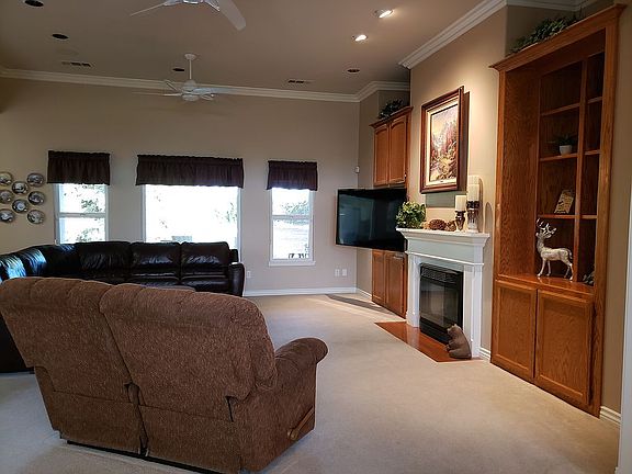 Custom home located in a quiet cul-de-sac on a large lot (approximately 0.4 acres). This home is a 4 bedroom, 2.5 bath, with whole house vacuum system, whole house fan, new HVAC, Nest thermostat, security system, granite counter top in kitchen, double ovens, large pantry, 9 foot ceilings throughout with vaulted ceiling in living room, ceiling treatments in dining room and master bedroom, crown molding in entryway and living room, two separate walk in closets in bedroom, laundry room with room for second refrigerator, built in clothes hampers, built in desk in kitchen, stained glass indoor accents, large front porch, oversized 3 car garage plus a shop (11x17.5 feet).