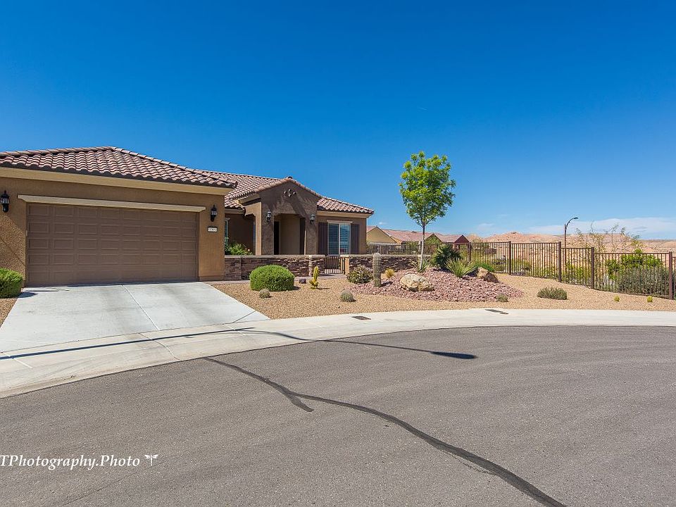 EnjoyVIEWS from your beautiful COURTYARD in the Front of this SunCityMesquite BEAUTY!Situated at the end of the culdesac with LUSH LANDSCAPED yards and great Views.Covered Patio in Rear also lushly landscaped with privacy wall for BARBEQUE Area to enjoy the Sunset! Spacious Kitchen with kitchen dining area as well as a separate Dining Room and Den! Kitchen offers up-graded cabinets with roll-out trays and base wastebasket. Up-Graded Granite countertops, Deluxe built-in Whirlpool appliances, under counter lighting and pendant lights over counter. Master Bedroom has enlarged Bay Window and Master Bath includes an upgraded shower enclosure and comfort height toilet.Laundry Room offers Built-in Cabinets and laundry room tub.2,268 Sq Ft with beautiful Tile and Carpet Flooring.Central Vac, 4"PLANTATION SHUTTERS throughout!Extended GARAGE is 24' long! With Built-In cabinets and work bench and additional insulation. Well cared for home on large lot.Great neighborhood.You're going to love sitting on the front courtyard Paver Patio morning or afternoon!Amenities include Indoor and Outdoor Swimming Pool, Bocce Ball Courts, Pickleball Ct. 18Hole Putting Course at the Recreation Center!