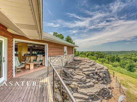 OZARK MOUNTAINTOP RANCH/RETREAT! This 1634 acre m/l property is located between Branson, Mo and Harrison, Ar with an easy drive to Table Rock Lake, Bull Shoals Lake, or to the Buffalo River National Park. Set up to be a cattle farm with pasture water or a hunting, fishing, ATV retreat. A 4-5 acre m/l private lake is stocked with bass, bream, catfishmaking it a fun place for youngsters adults water for livestock wildlife. Numerous streams, springs ponds as well. Several large food plots make for an amazing deer turkey population. Tree stands and blinds are included. The land has been managed for several decades to enhance the amount of wildlife it has huge marketable timber. Enjoy riding ATVs? This land has miles miles of wide, tree shaded ATV trails. Ride the trails through the fields watching the wildlife viewing themountains, creeks springs. The beautiful stone cedar home is perched on a high mountaintop with a 360 degree view of the land the surrounding Ozark mountains and valleys. From the house, see all the way into Missouri in one direction all the way to the Buffalo River Country in the other! Sit in your living room, kitchen, or deck look out over your ranch private lake! The home has 2 to 4 bedrooms, 3 1/2 baths, a huge game room/den in the basement. Other features include cathedral ceilings, open floor plan, gas log fireplace, master bath with separate shower jacuzzi tub, fully equipped kitchen with inlaid tile floors, lots of glass to showcase the one of a kind view. A 2 1/2 car garage has an inside seating area in front of an overhead door that provides another location to sit and enjoy the view! A 24'x60' metal building includes a 1 bedroom, 1 bath kitchen living area guest quarters plus a large storage area. Very private setting with no public roads going through the property, yet an easy drive into Harrison or Branson. You won't see another Ranch/Retreat like this one!