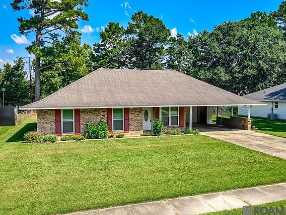 Welcome to this beautifully maintained and updated 3-bedroom, 2-bath home that blends comfort and convenience. Step inside to find a bright, open living area featuring wood floors, a brick fireplace, and plenty of space to gather. The updated kitchen is a standout with white cabinetry, granite countertops, modern backsplash, stainless steel appliances, and a breakfast bar overlooking the living space. The primary suite offers a private retreat with an en-suite bathroom featuring a tiled walk-in shower and granite vanity. Two additional bedrooms share a second updated bathroom with a double vanity and stylish tile surround. Out back, enjoy a covered patio perfect for entertaining, a fenced yard for pets or play, and a carport with additional storage. This home is move-in ready and located in an established neighborhood close to schools, shopping, and dining.