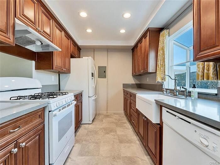 Spacious condo with its own two car garage. It's in a small complex with tall pine trees and a pretty courtyard. The two bedrooms have their own bathrooms, which is great for guests and family privacy. Just updated the 40yr old kitchen in Fall 2019 with maple cabinets, grey quartz countertops, and all new appliances.