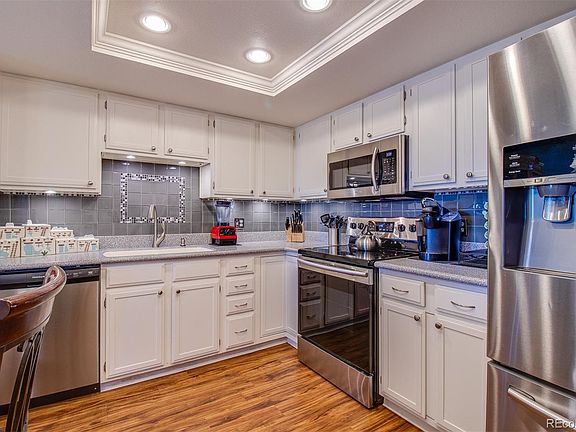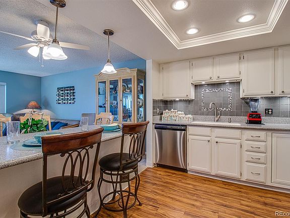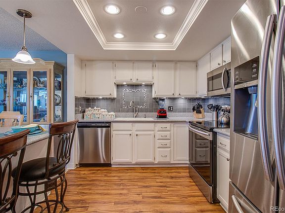 Beautifully updated 2 bed (1 Non-Conforming) 2 bath 1092 sq ft model in the popular Seville area in the premier Heather Gardens 55+ Community. Seville is a sought-after enclave of 5 buildings within Heather Gardens where owners enjoy the use of a private swimming pool, tennis/pickle ball courts, recently renovated koi pond, and community of fabulous neighbors! As you enter this unit you will find a beautiful kitchen w/ updated cabinets and counters, SS appliances, and a large breakfast bar. The kitchen opens to a spacious living/dining room. The open floor plan makes entertaining friends & family effortless. The spacious Master Suite offers an updated attached ensuite bath with a beautiful newer walk-in shower surround and a large oversized walk-in closet. The second bedroom with the adjacent updated bath is perfect for a guest bedroom or office. Step out onto the enclosed lanai which adds an additional indoor /outdoor space for relaxing while enjoying the serene SE view overlooking the Seville area. This unit also boasts of plank flooring, white doors and baseboards throughout, Plantation shutters, ceiling fan, newer windows and AC units and storage closet on the 4th floor. Enjoy the convenience of the in-unit laundry room with it’s own w/d and nice storage/pantry shelving. New electrical Panel being installed. Secure building with underground parking space and storage locker. Come partake in the amazing HG 55+ community w/ its’ 200+ acres, 50,000 sq ft clubhouse w/ golf, tennis, indoor/outdoor pools, sauna, fitness center, restaurant, billiards room, workshop, the vast array of classes/activities, nearby light rail & Cherry Creek Reservoir w/ bike trails & water sports. Welcome Home to the Heather Gardens Country Club Lifestyle